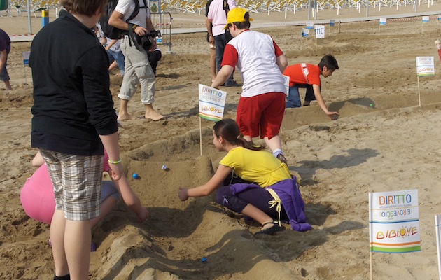 A Bibione è stato creato un percorso per giocare con le biglie sulla sabbia, la pista più lunga del mondo, registrata ufficialmente nel Guinness dei Primati.