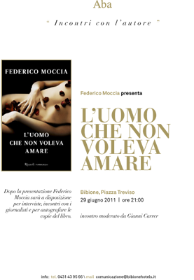 Questo con Moccia è il primo degli incontri con l’autore in programma, organizzati dall’ABA (Associazione Bibionese albergatori) per questa estate 2011.