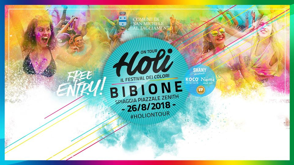 Dopo l’incredibile successo della seconda tappa del 2 giugno, torna Holi on Tour a Bibione, il festival dei colori. L’appuntamento è fissato per domenica 26 agosto 2018 dalle ore 15:00 alle 20:00 in piazzale Zenith con ingresso gratuito.