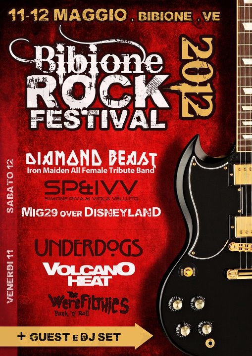 A Bibione, Venerdì 11 e Sabato 12 Maggio 2012, in Piazza Mercato (zona Luna Park/poste),  dalle ore 18.00 alle ore 01.00, sarà organizzato il “Bibione Rock Festival“, 2 serate di “Puro Rock”.