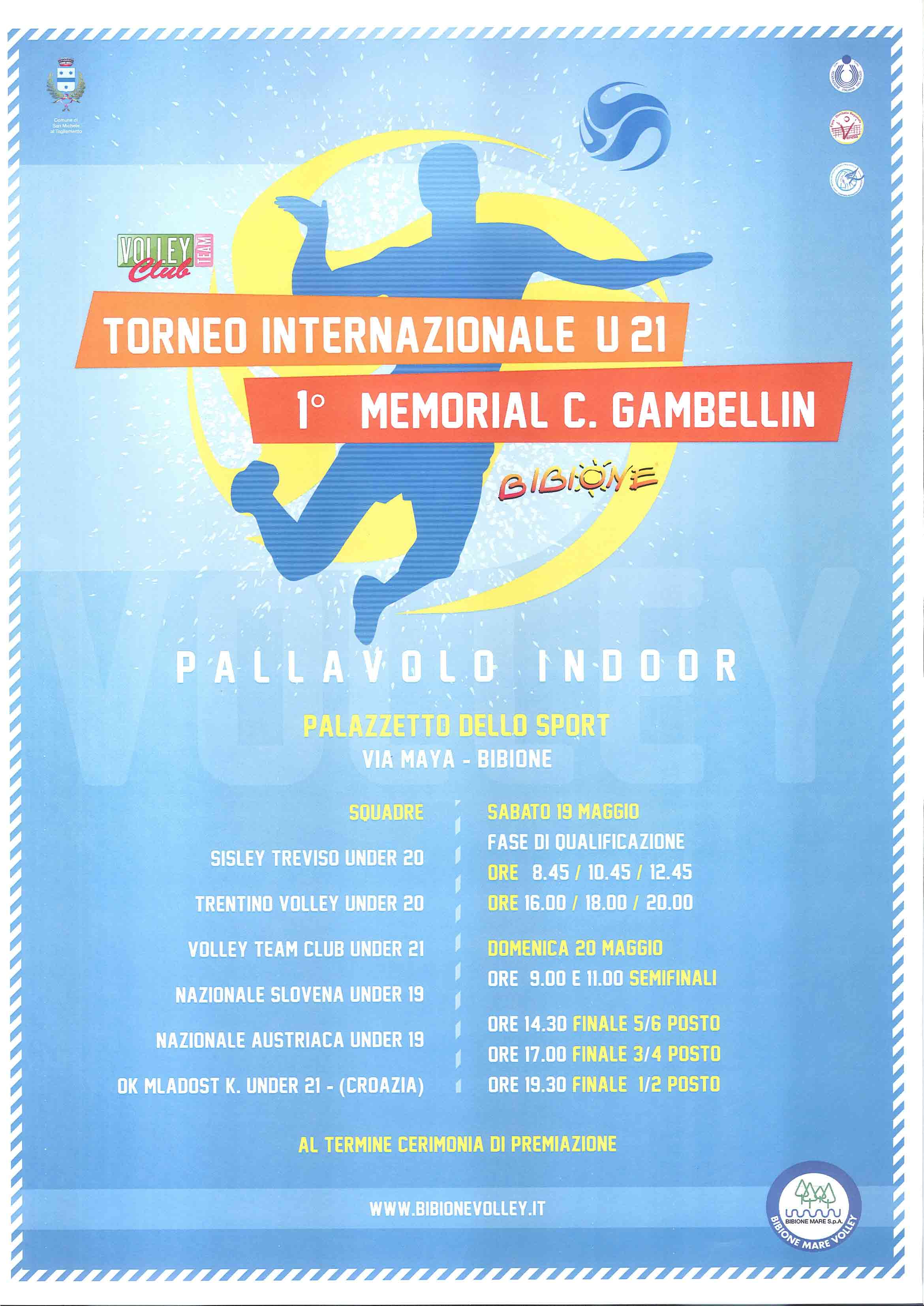 Sabato 19 e Domenica 20 maggio 2012, presso il Palazzetto dello Sport di Bibione, si disputerà il “1° Memorial Claudio Gambellin“, un Torneo Internazionale Under 21 di volley maschile, dedicato al pallavolista bibionese prematuramente scomparso nel 2002.