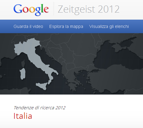 A poche settimane dalla fine dell’anno è online il “Google Zeitgeist 2012“, ovvero la classifica annuale delle parole più digitate sul motore di ricerca di Google, sia a livello mondiale che divise per paese.