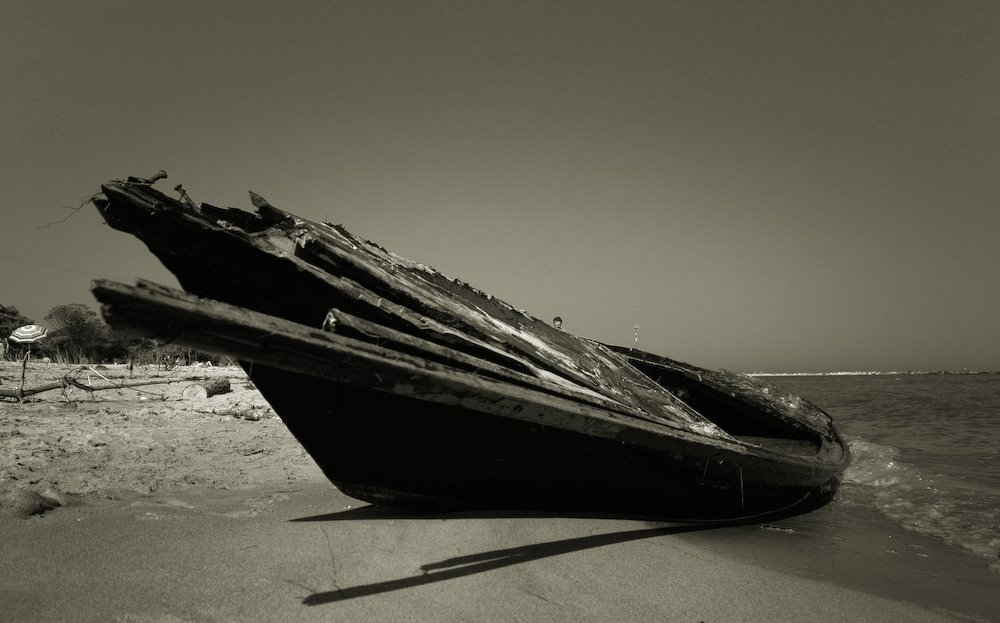 Da Panoramio, 2 foto interessanti che ritraggono un’imbarcazione spiaggiata sulla spiaggia del Faro a Bibione, dell’utente “GiacomoCattaruzzi″.