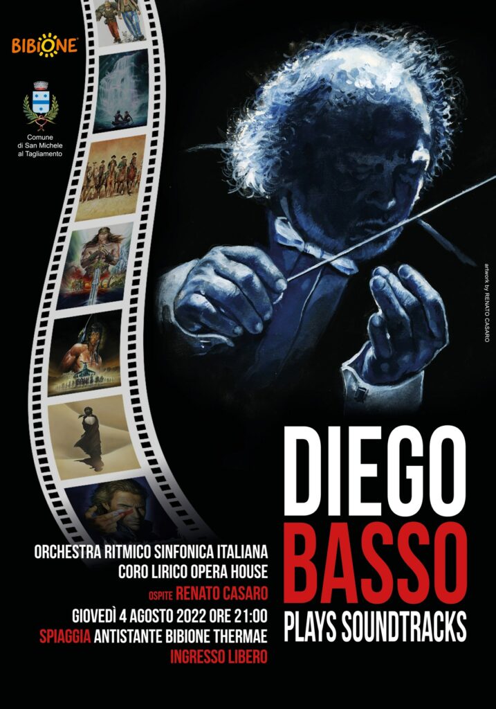 Diego Basso Plays Soundtracks. Un evento straordinario che godrà la presenza del Maestro Diego Basso con l’orchestra Ritmico Sinfonica Italiana e il Coro Lirico Opera House. L’appuntamento è per giovedì 4 agosto 2022 ore 21:00 in spiaggia antistante le terme di Bibione. Ingresso libero.