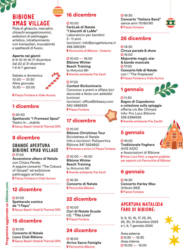Ecco di seguito il programma ufficiale del Bibione Christmas Village 2023.