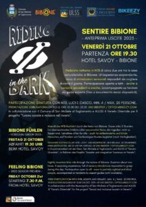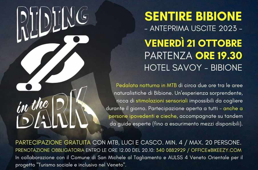 Partecipazione gratuita con mountain bike, luci e casco. Minimo 4, massimo 20 persone. Iscrizione obbligatoria da chiamare entro mezzogiorno del 20 ottobre 2022 al seguente numero: 340 0882929 / office@bikeezy.com